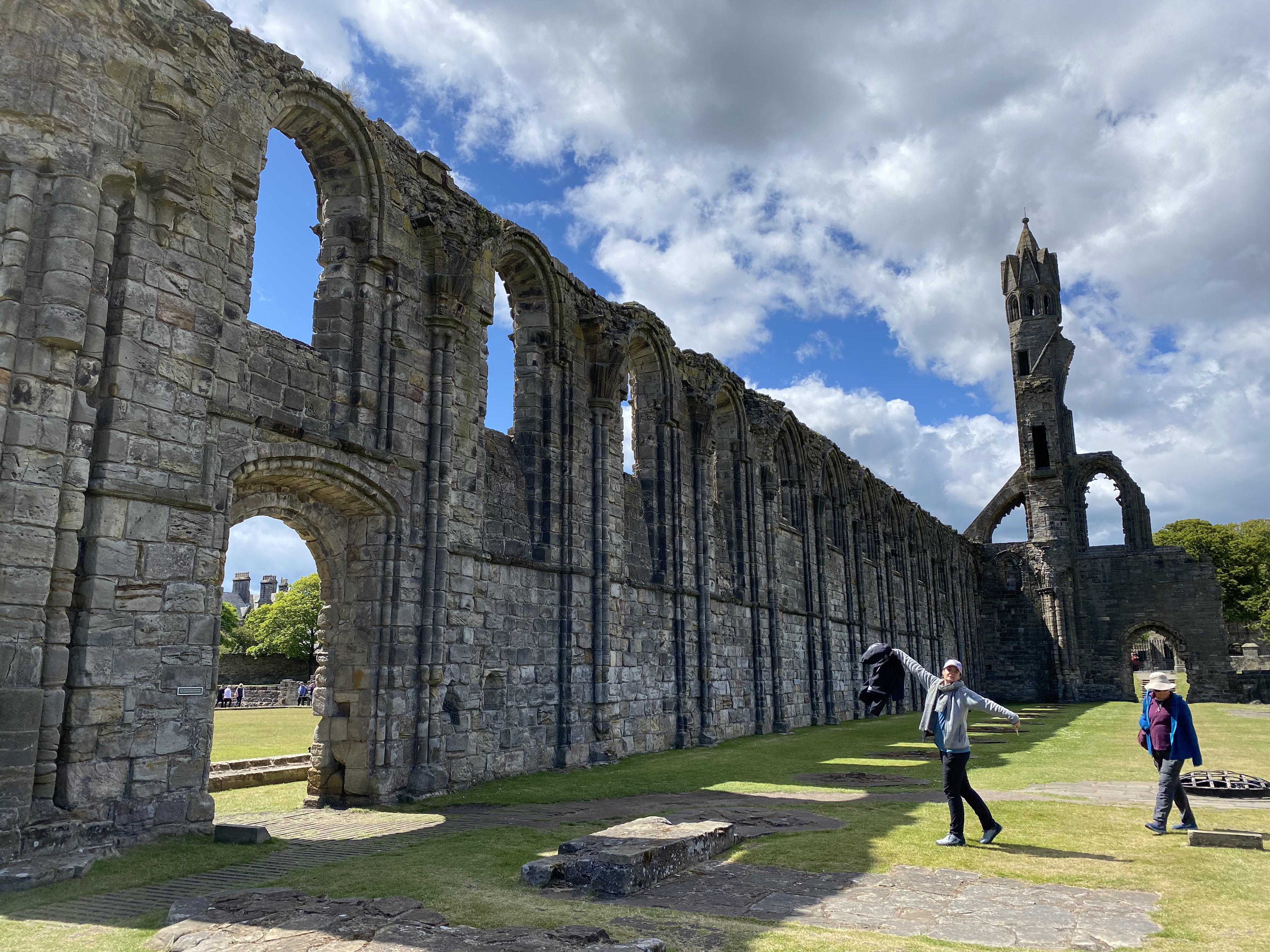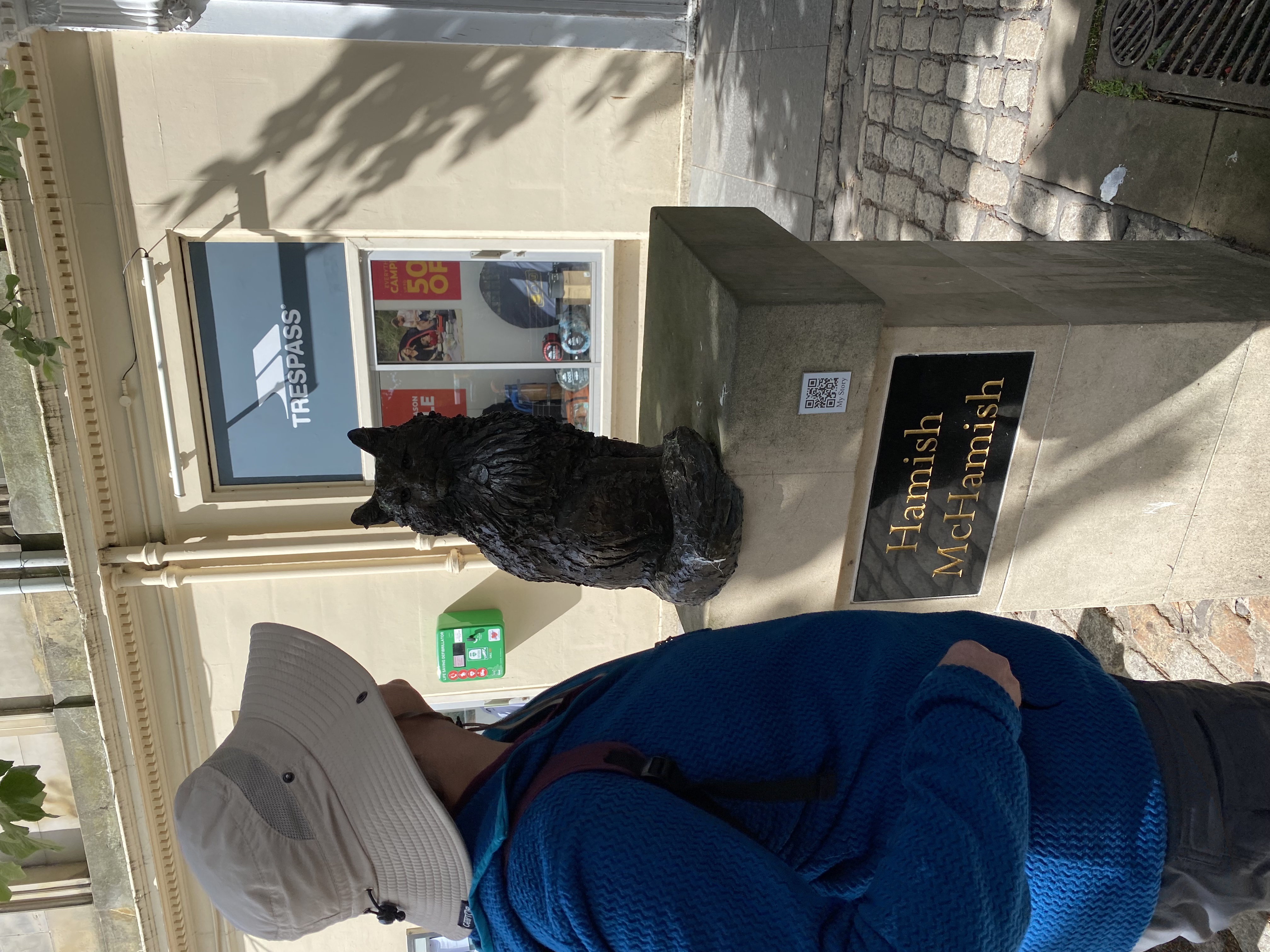 On this day, we made our way back south to Edinburgh, making several stops, including a long lunch in St. Andrews. There, we met Hamish, a former resident of the town who used to regularly visit the shopkeepers. After arriving in Edinburgh, Meg and I braved the high winds to conquer Arthur's Seat (a much harder hike than I remember!).